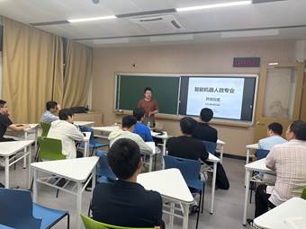 9月29日,机械工程学院在一教409教室举行了首届“智能机器人”微专业开班仪式。机械学院副院长沈伟教授、微专业负责人陈琦教授、机器人系副主任吴晨睿,以及全体任课教师和同学共同出席。沈老师首先代表学院致辞,他阐述了创办智能机器人微专业的初衷。在当前具身智能时代的浪潮下,机器人技术已成为推动社会变革的关键力量。微专业的设立,不仅是为了深化专业教育,更是为了打破学科壁垒,面向全校不同专业背景,甚至包括文科专业的同学开放学习机会。希望通过这一平台,能够有效拓展学生的知识视野,帮助同学们对智能机器人行业形成一个系统而全面的认知,从而为未来的职业发展增添重要的砝码,增强就业竞争力。随后,微专业负责人陈琦教授发表了讲话。他对首批加入微专业学习的同学们表示热烈欢迎,并介绍了微专业的课程体系与培养目标。陈教授鼓励同学们要珍惜这次跨领域学习的机会,将机器人技术与自身原专业相结合,激发新的创新思维。机器人系教学系主任吴教授在发言中,对同学们的学习提出了殷切期望。他勉励大家,微专业的学习是一个充满挑战但也收获丰厚的过程,希望同学们能够持之以恒,潜心钻研,克服困难,顺利完成学业,将所学知识转化为未来职场上的核心优势。