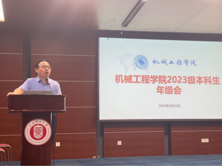 为帮助大三同学明确新学期学习目标、规划学业与职业方向,更好应对升学、就业等关键节点挑战,树立安全意识。2025年9月29日,机械学院2023级本科生年级会在图文信息中心一楼报告厅召开。学院党委副书记韦彪,23级本科生辅导员汪瑜、曹森彬,23级本科生参会。