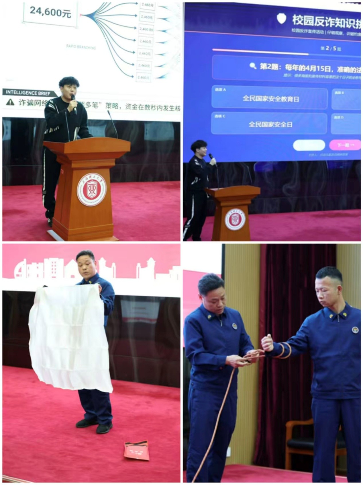 随后,现场首播了由机械工程学院团委原创的反诈微电影《是停停,不是晴晴》。影片以校园真实案例为蓝本,用贴近学生的叙事方式揭示网络诈骗陷阱,引发在场同学强烈共鸣。