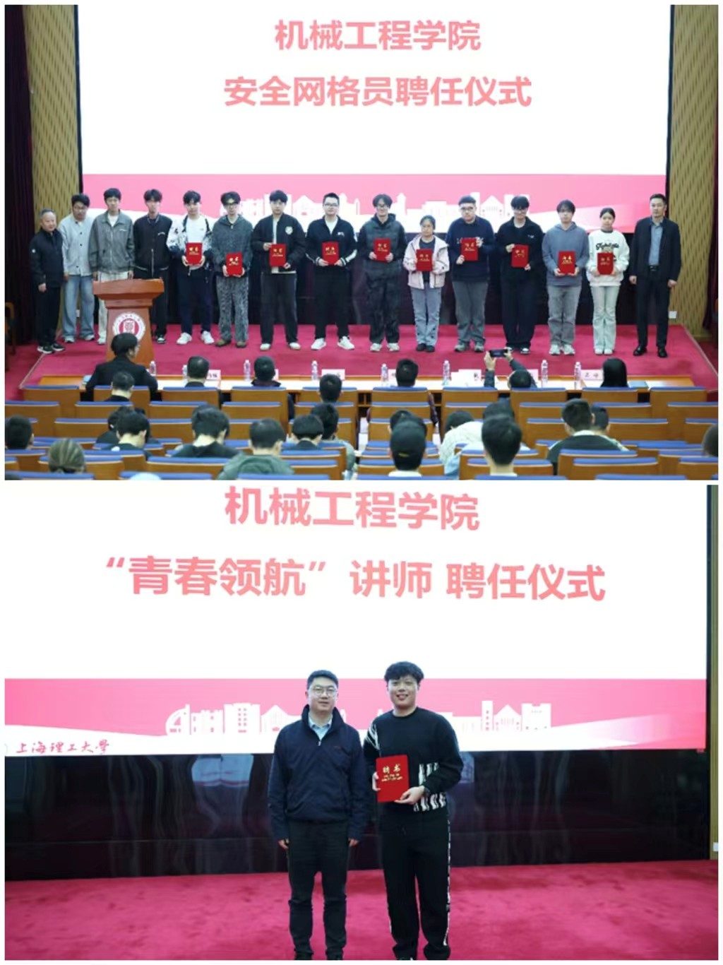 此外,机械工程学院高度重视队伍建设。在“415”前夕正式成立安全网格员队伍。除传统的“辅导员-楼长-层长-宿舍长”条线外,新增“学院-辅导员-网格员”条线,在校园安全、文化引领、权益维护、意识形态、心理健康、一站式宿区、招生培养就业等各领域中培养另一支战斗力强的学生队伍。