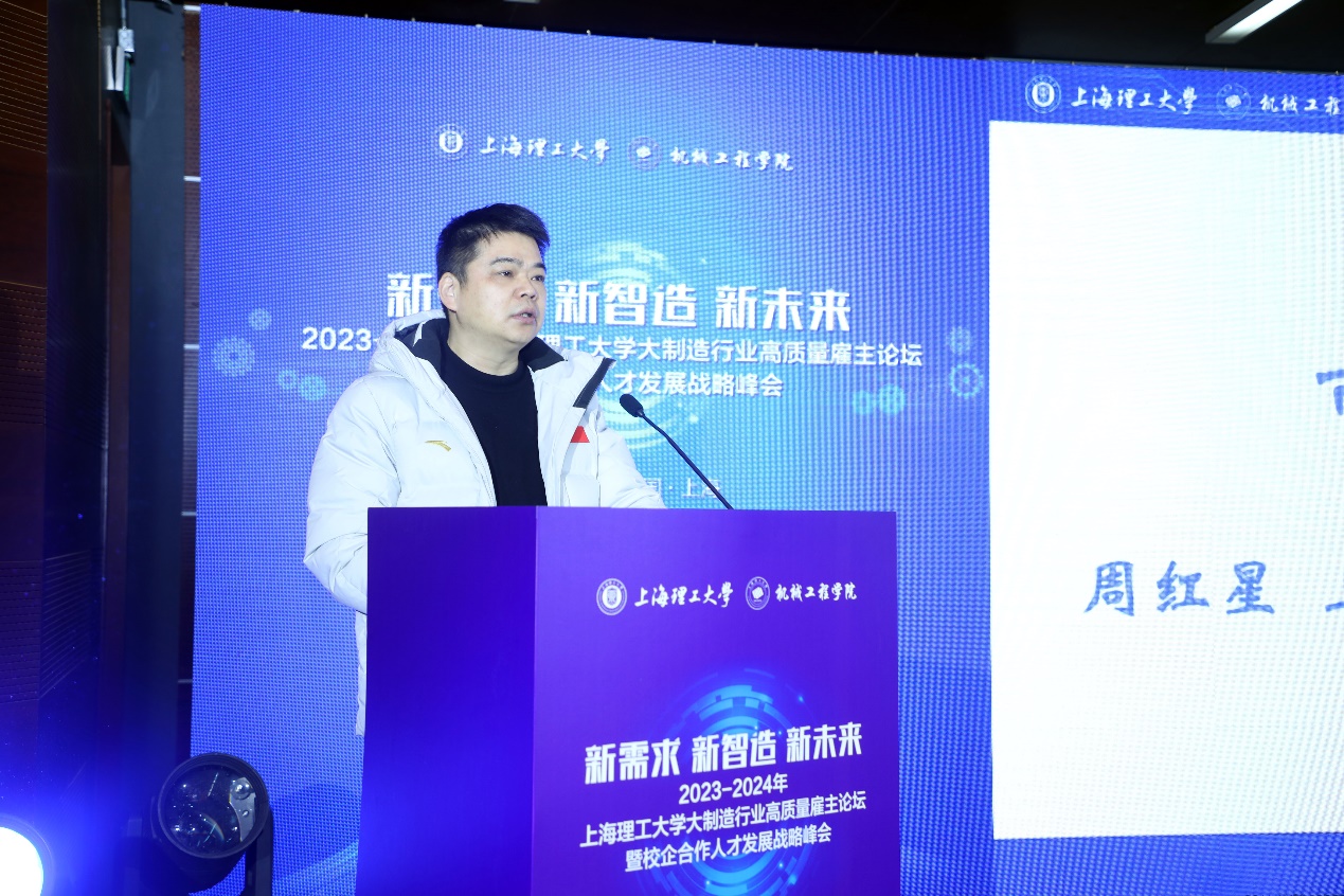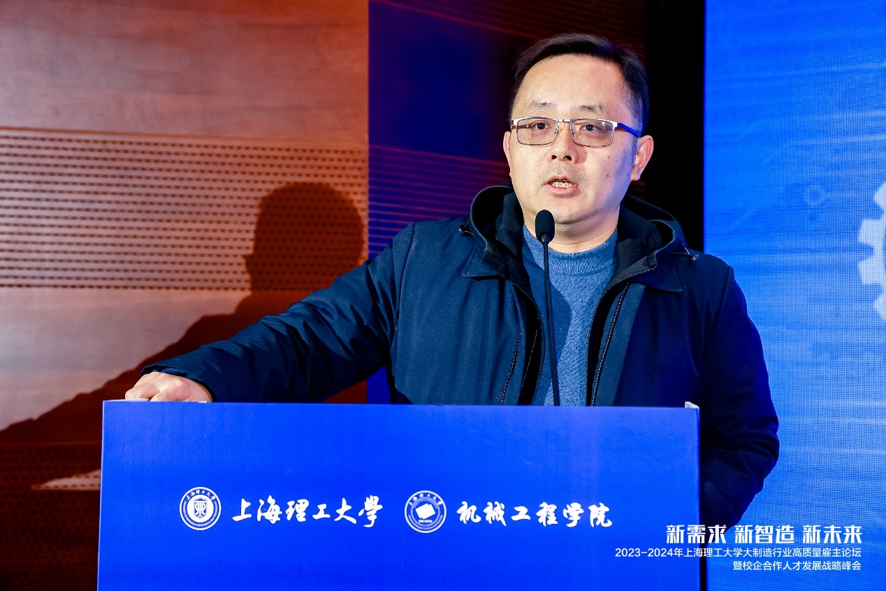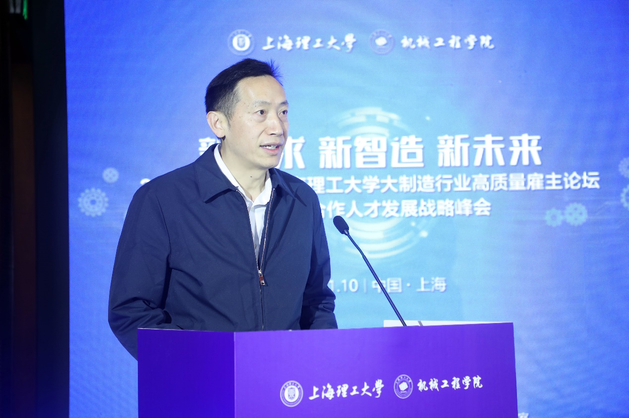 1月10日,上海理工大学第二届大制造行业高质量雇主论坛暨校企合作人才发展战略峰会在图文信息中心举行。60余家智能制造企业、110位企业技术专家和人力资源专家走进上理工,进一步深化产教融合、科教融汇,推进制造业高质量发展,深入探索高层次卓越工程人才培养新路径。上海市教育委员会学生处副处长周红星、上海理工大学党委副书记、副校长刘德强以及上海交通大学、同济大学、华东理工大学、东华大学、上海大学、上海第二工业大学、上海工程技术大学、上海应用技术大学和我校学生工作部(处)、研究生工作部、校团委、机械工程学院相关领导嘉宾出席。开幕式由机械学院党委副书记韦彪主持,峰会主论坛报告由机械学院副院长姜晨主持。