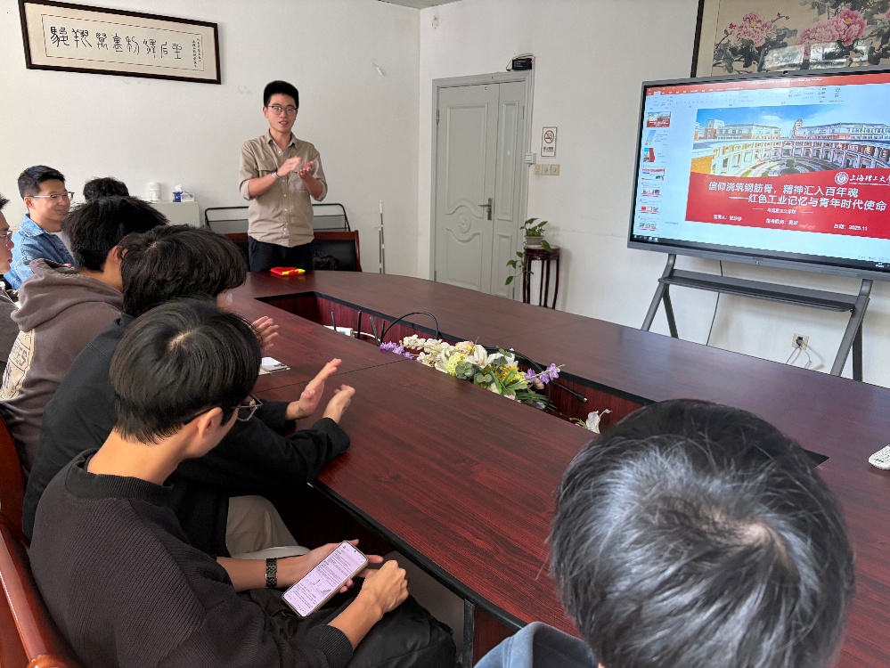 为深入学习贯彻学习红色工业记忆与青年时代使命,11月10日,机械电子研究生第一党支部特别邀请了马克思主义学院张沙沙同学为我们分享他们在红色工业研学中的所见所思,沉浸式的讲述为党支部师生带来了一场跨越时空的思政盛宴,让红色工业精神在机械学子心中落地生根。