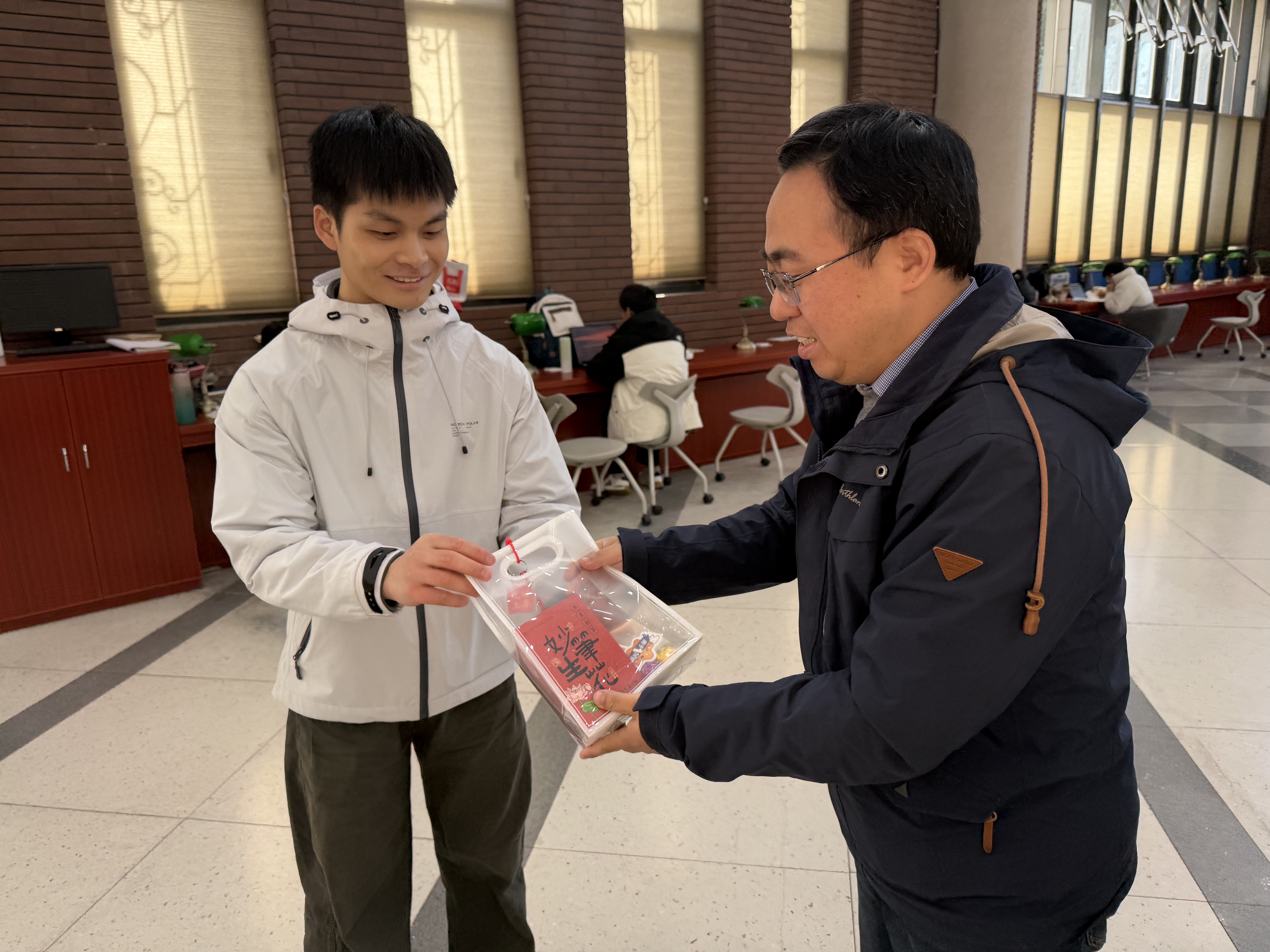 窗外寒风渐起,室内暖意融融。全国硕士研究生招生考试进入最后冲刺阶段,图书馆内的学习氛围日益紧张、浓烈。12月7日中午,机械工程学院在学校湛恩图书馆一楼为备战考研的学子们精心准备了一场温馨的慰问活动,为紧张备考的同学们送上一份特别的关怀与鼓励。