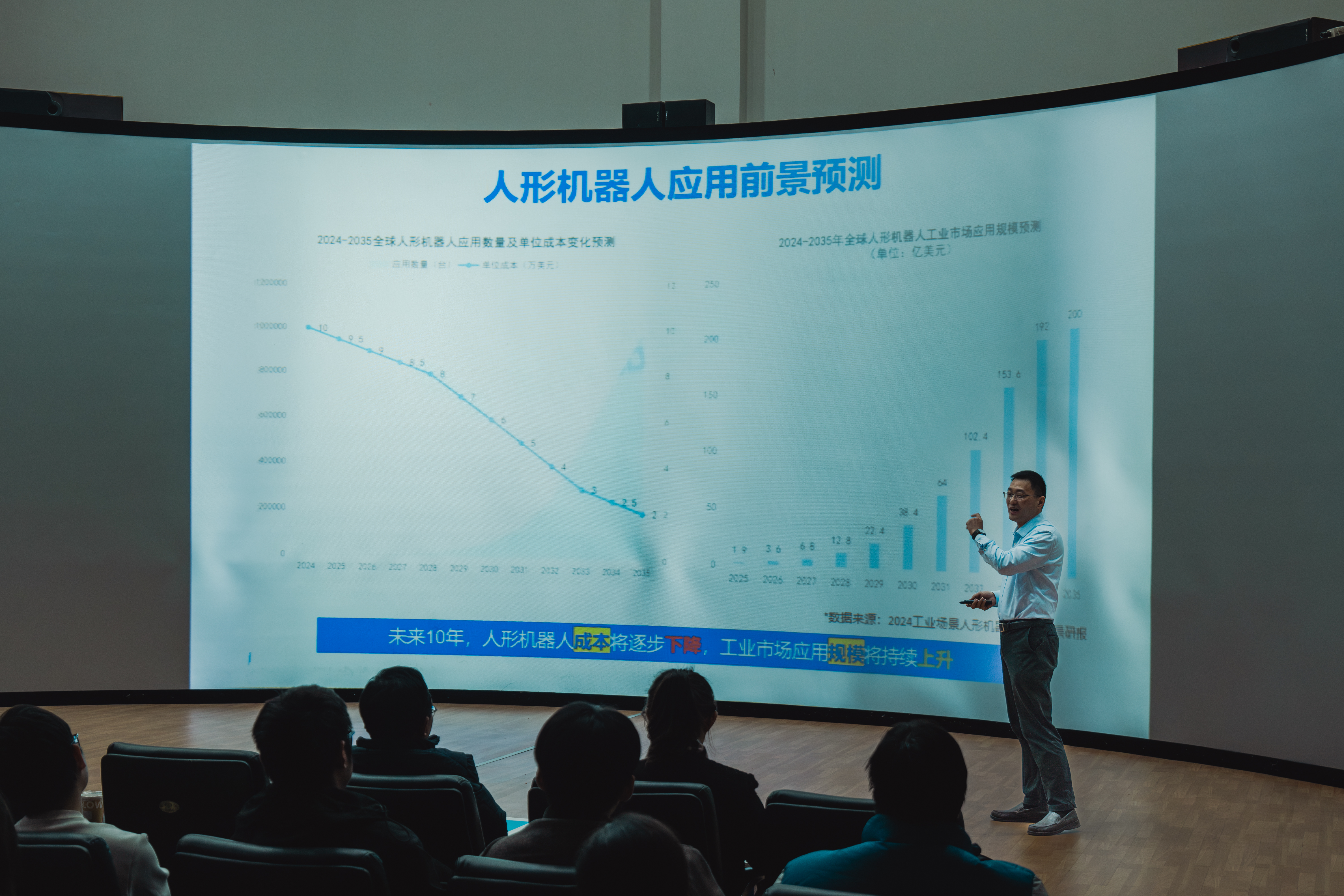 最后,提问环节中,有学生聚焦产业布局逻辑,提出“当前行业为何重点布局人形机器人赛道”的问题,张辉结合自身在自动化领域的深耕经验,从行业战略层面给学生做了深入浅出的分析。