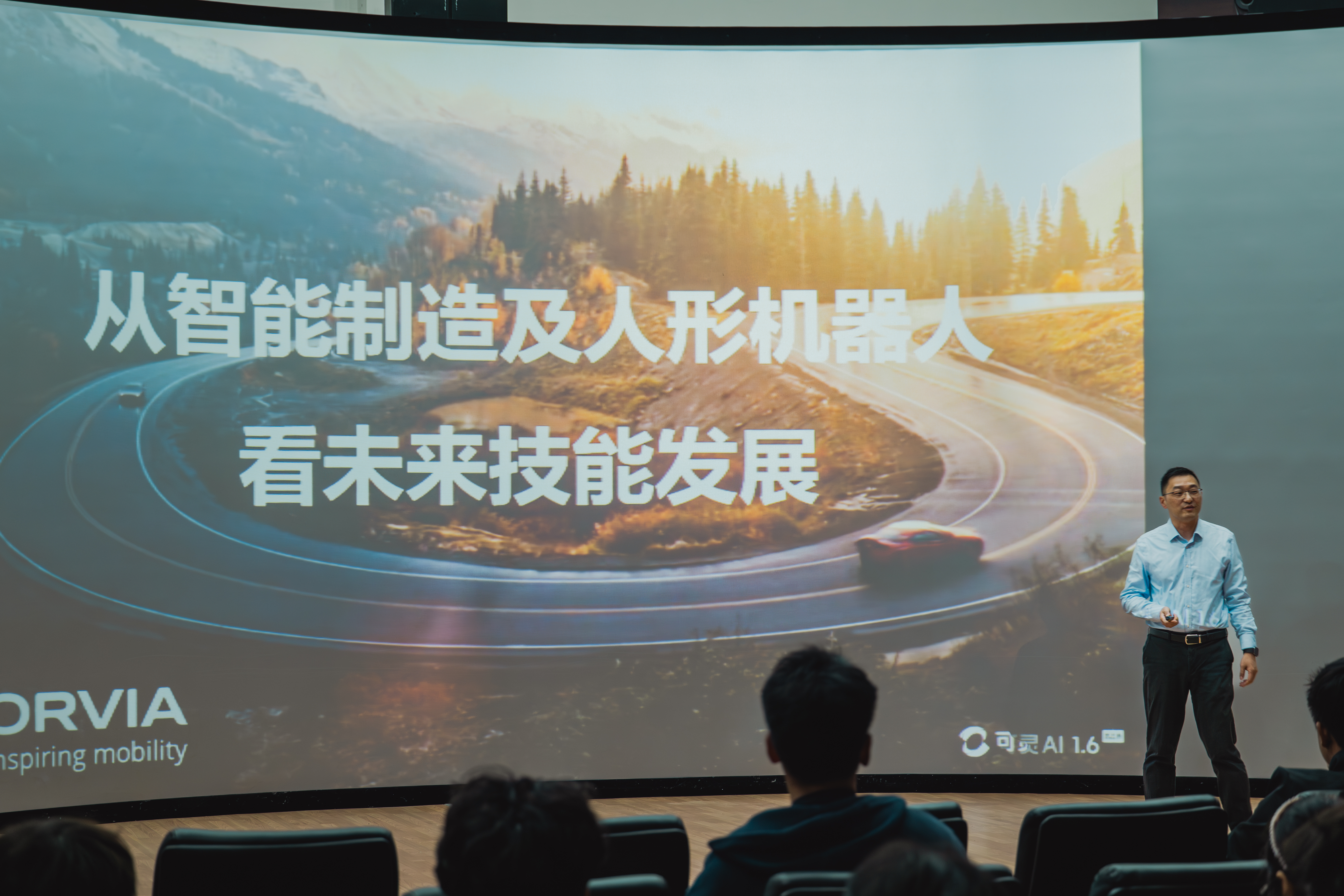 12月5日下午,机械工程学院职业发展协会在国家级装备制造虚拟仿真实验教学中心举办“大咖进化论”第一季第二期活动。本期特邀嘉宾——佛瑞亚海拉电子自动化部门负责人、全球自动化技术网络Leader、2004届校友张辉,以“从智能制造及人形机器人看未来技能发展”为题,为学院本研学生带来一场“产业级”干货盛宴。