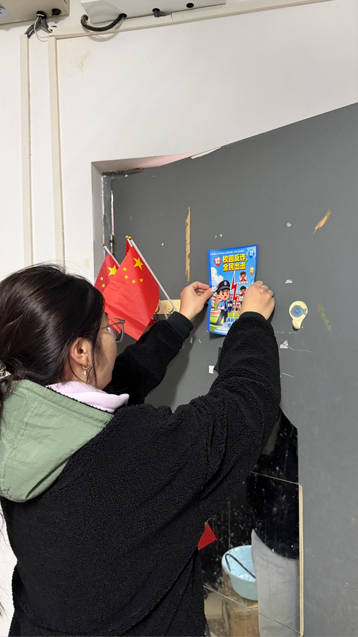 为提升宣传的亲和力与针对性,支部党员分为男生组与女生组,分别走进对应宿舍楼开展宣传。走访中,党员们发放海报提醒同学们牢记“不听、不信、不转账”原则,保护好个人财产与信息安全。许多同学驻足聆听,积极提问,交流氛围融洽热烈。