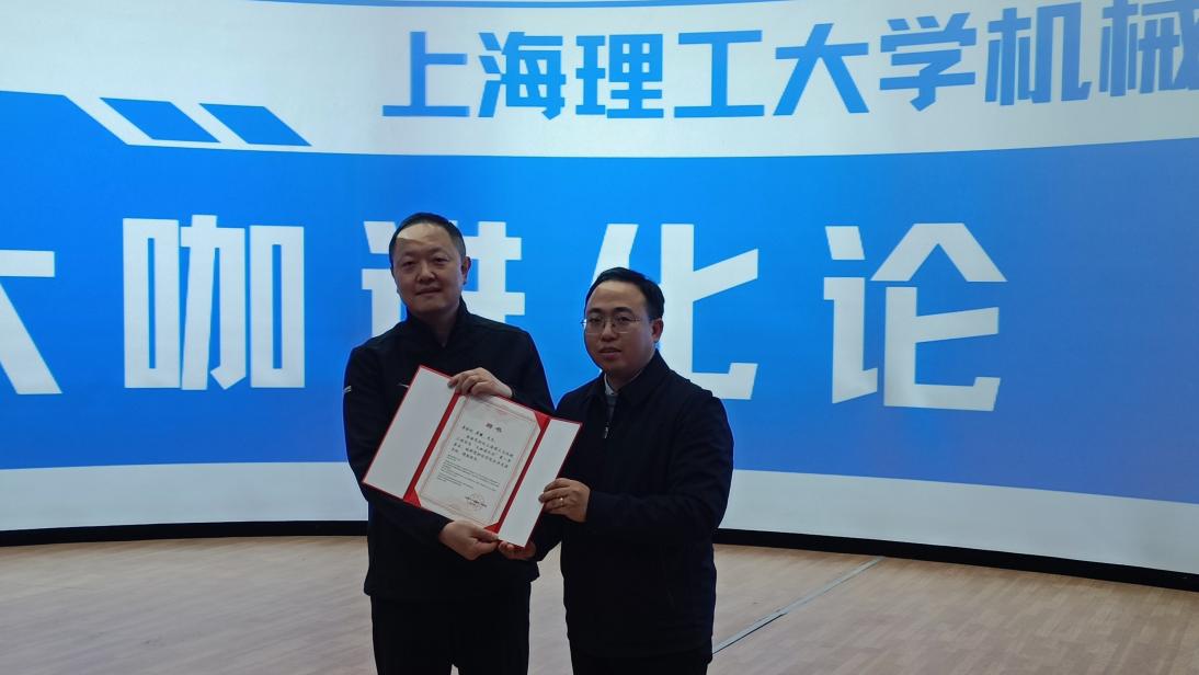 活动开始,高大威教授对整个活动进行简单介绍,韦彪代表学院欢迎艾里逊变速箱(上海)有限公司中国区销售负责人吴健先生及其团队的到来,并为吴健先生颁发机械工程学院企业生涯导师。