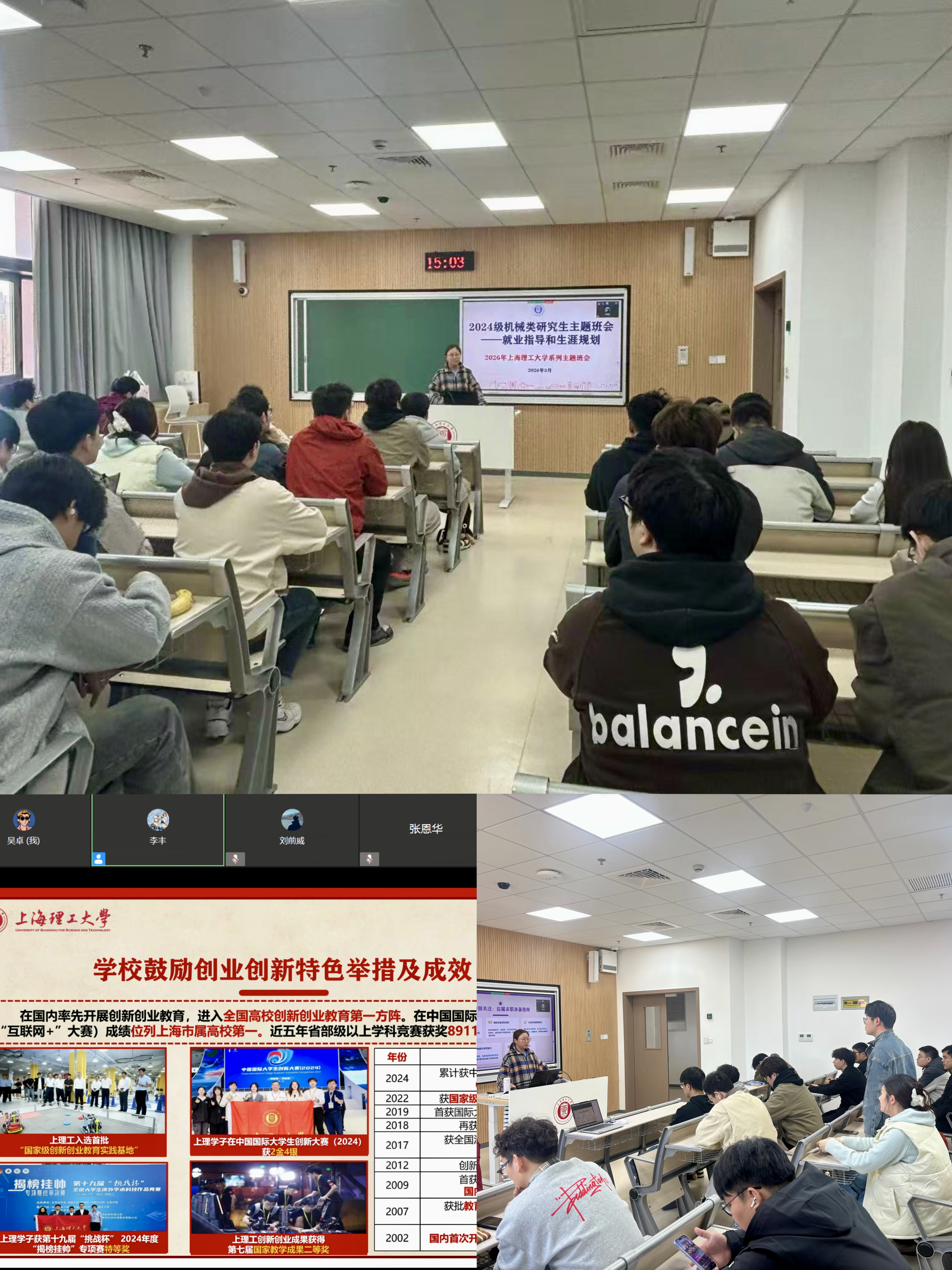 为帮助研究生科学规划职业生涯、把握就业形势,3月27日下午,2024级机械类研究生“就业指导与生涯规划”主题班会在第三教学楼505教室举办。班会由辅导员李丰老师组织并主持,全体2024级机械类研究生以线上线下相结合的方式参加。