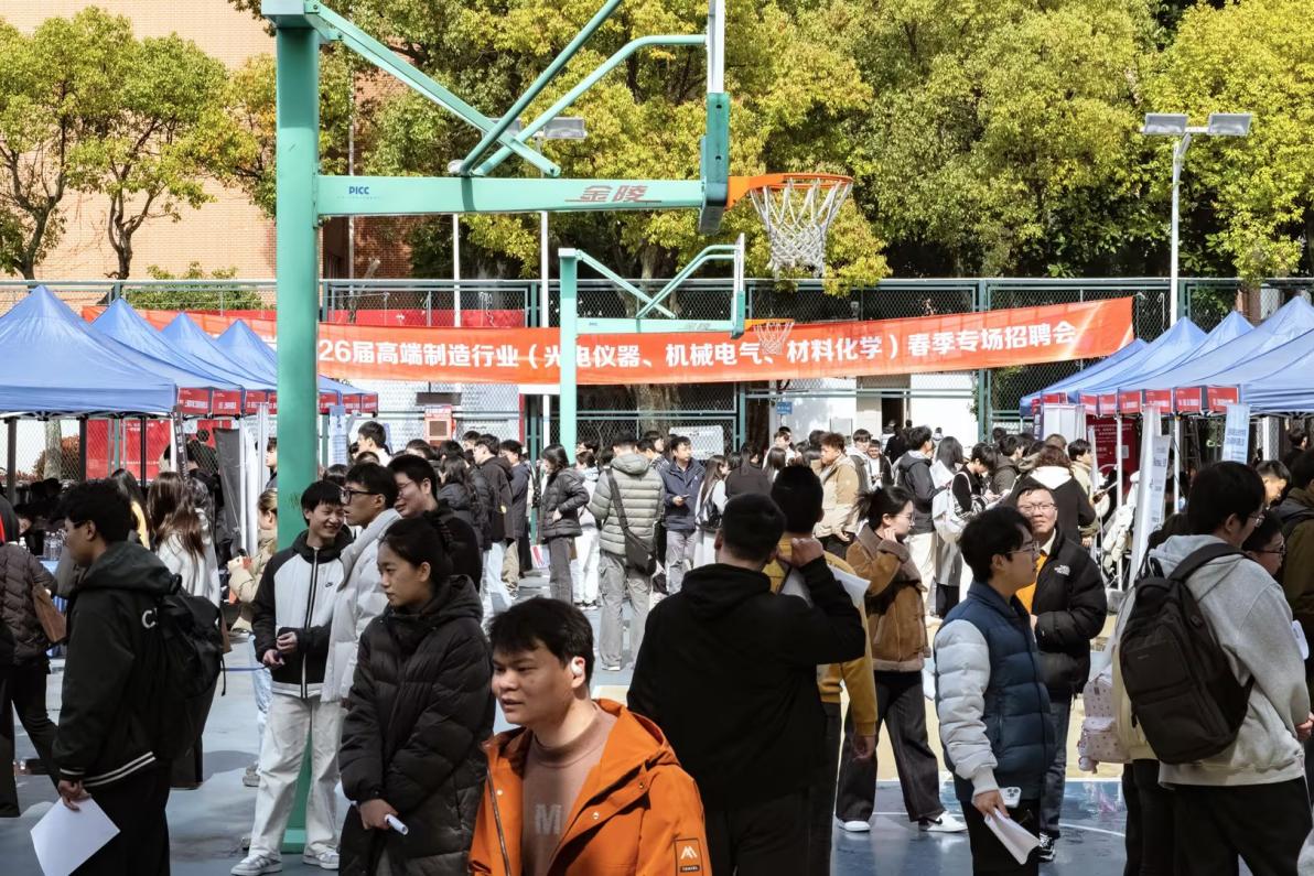 为深入贯彻落实教育部“春季促就业攻坚行动”部署,精准对接高端制造产业人才需求,搭建校企深度融合、供需高效匹配的就业平台,3月27日,光电信息与计算机工程学院、机械工程学院、材料与化学学院联合主办的2026届毕业生高端制造行业春季专场招聘会,在灯光篮球场(军工路516号)成功举办。本次招聘会聚焦高端制造核心赛道,汇聚行业优质企业,为三院学子与用人单位搭建起精准对接的桥梁,助力毕业生高质量就业。