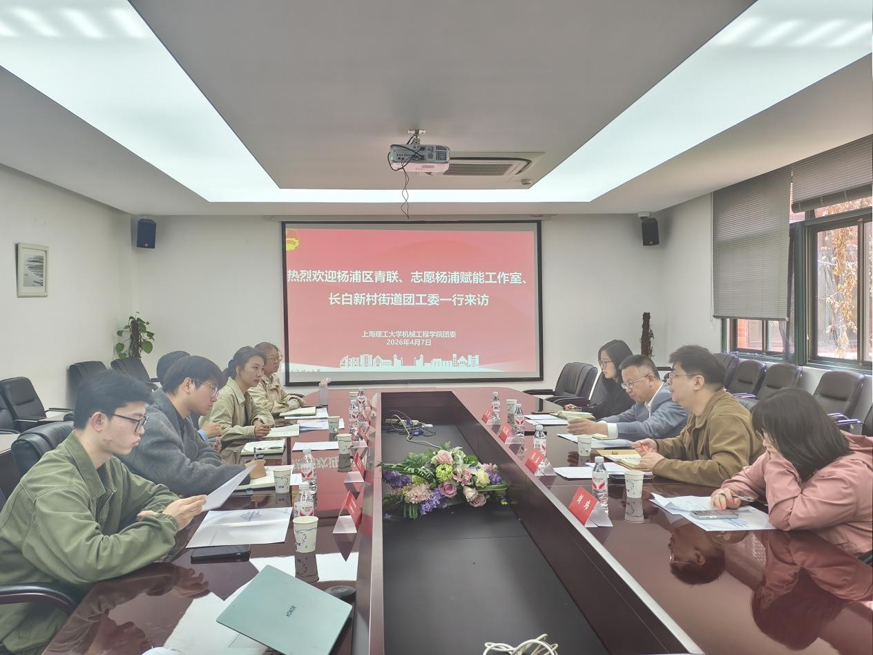 4月7日上午,杨浦区“志愿杨浦”赋能工作室专家冯占锐,杨浦青联副秘书长、大学生社群“主理人”支持计划项目负责人张磊,长白新村街道团工委副书记吴婷、社工办刘玮老师一行到访上海理工大学机械工程学院,开展校社志愿服务专题交流。